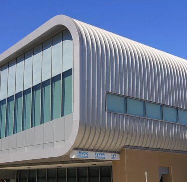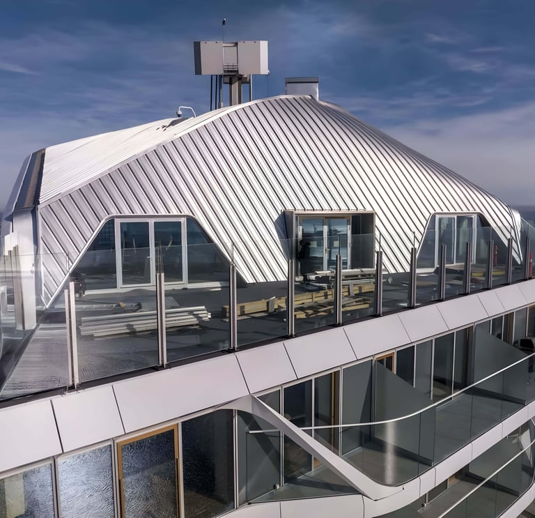 Kalzip panels are mechanically seamed and fixed to the structure using concealed clips. This allows thermal movement of aluminum while creating a continuous, watertight, and maintenance-free facade surface.