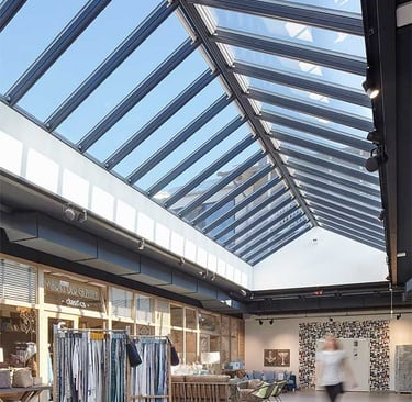 Palram roofing systems are engineered polycarbonate roof panels designed specifically for overhead applications where light, safety, and weather protection are critical. Unlike facades, these systems are optimized for load-bearing and impact performance.